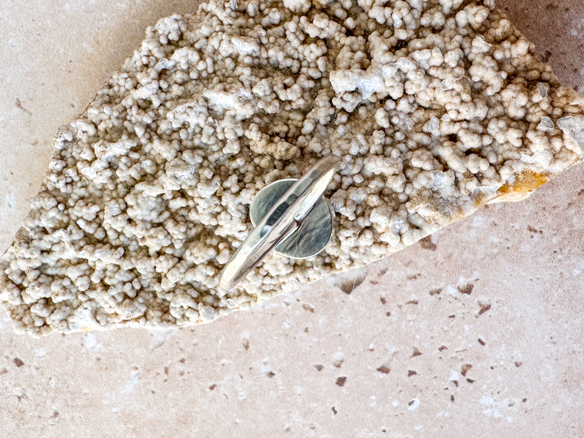 The ring is a US size 7.5 / UK size P. Thanks to its slender sterling silver band, the fit can be slightly more forgiving - thinner bands often feel comfortable on slightly larger sizes as well. This makes it versatile and easy to wear, whether you’re treating yourself or gifting it to someone special.