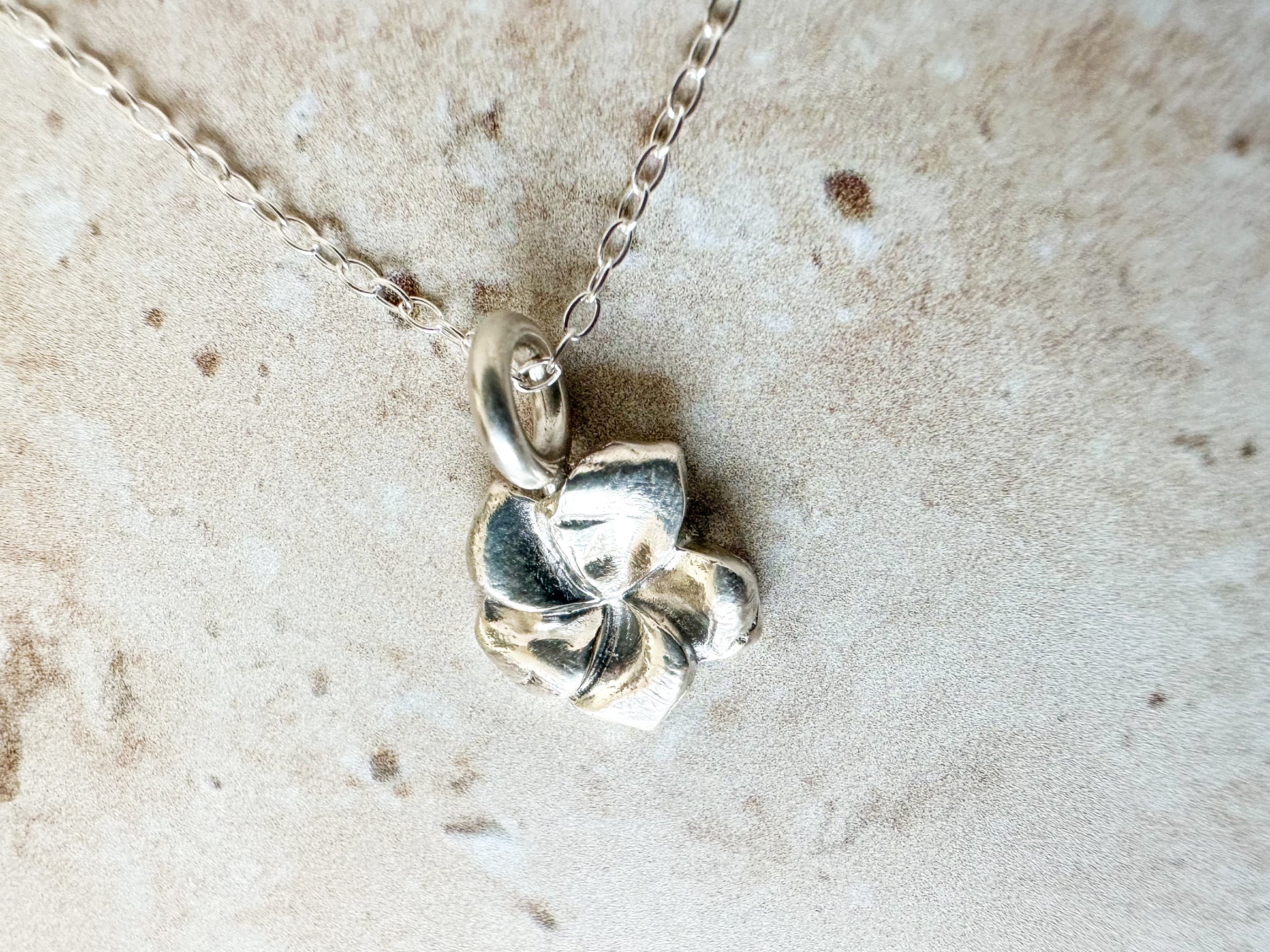 Wear beach vibes around your neck with this fine silver hibiscus pendant. You can choose it as a pendant only or with a 1.3mm trace chain.