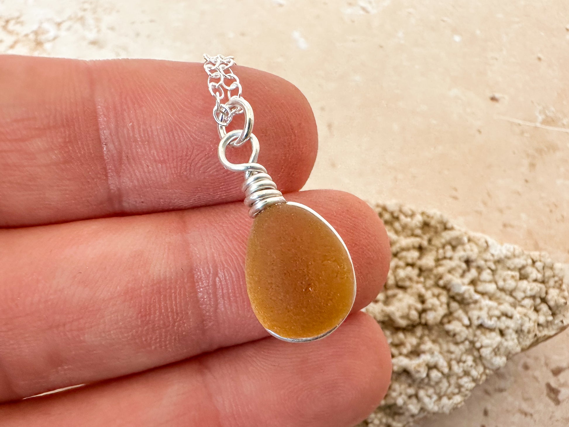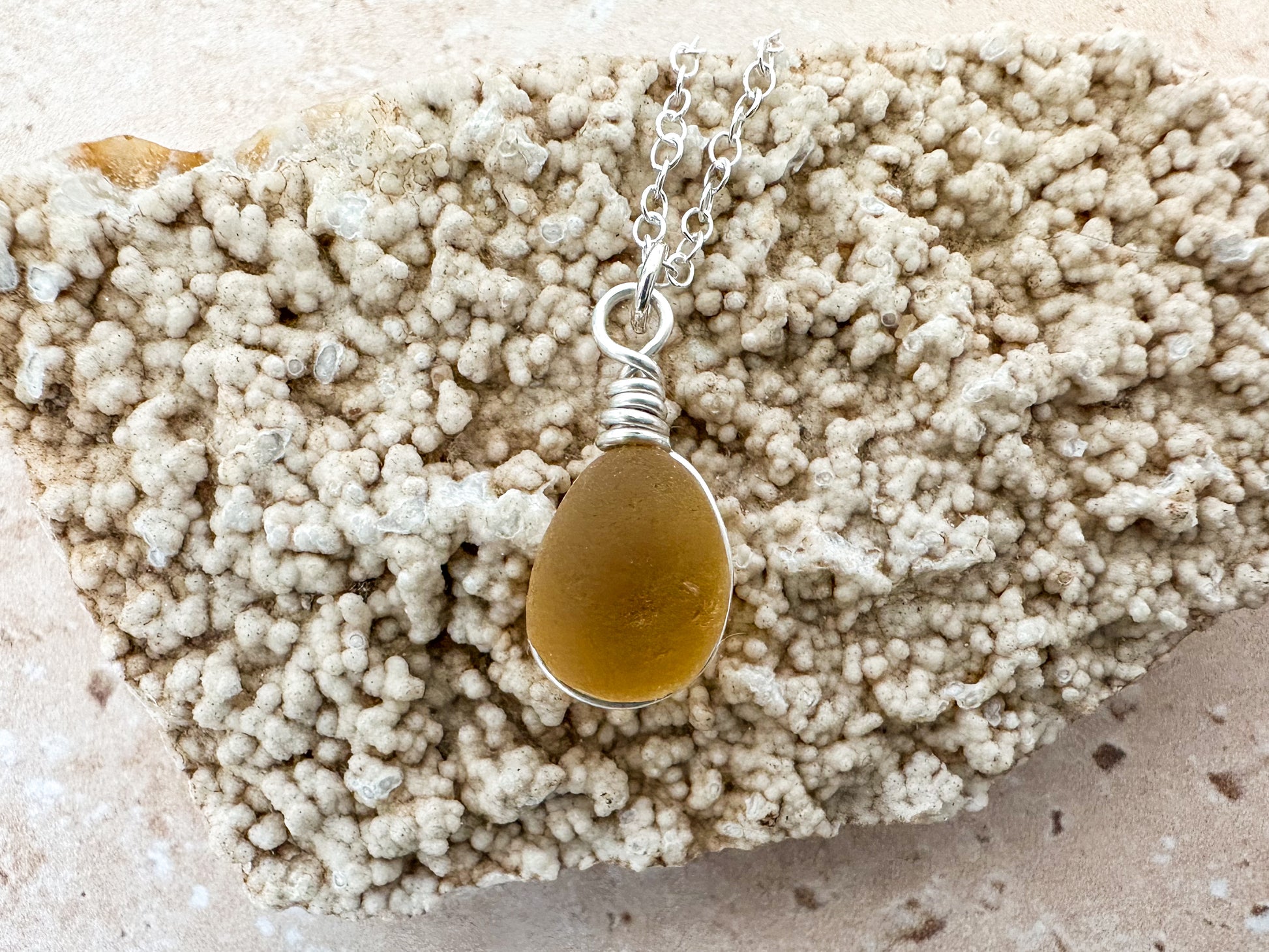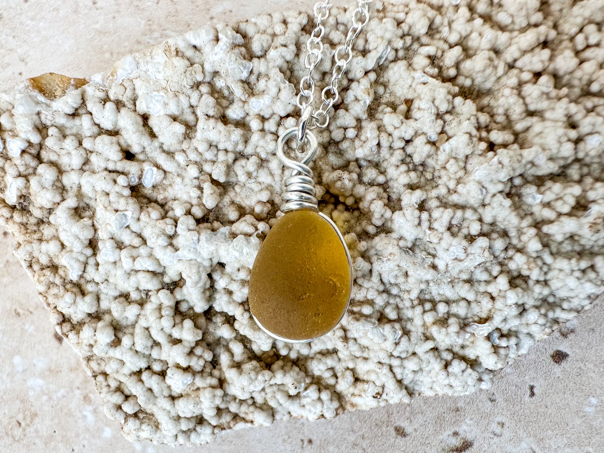 This honey yellow sea glass pendant glows with soft, golden light - a gentle reminder of the sea’s warmth and beauty. The genuine sea glass was collected from the shores of Seaham, where each piece has been naturally shaped and frosted by decades in the waves.