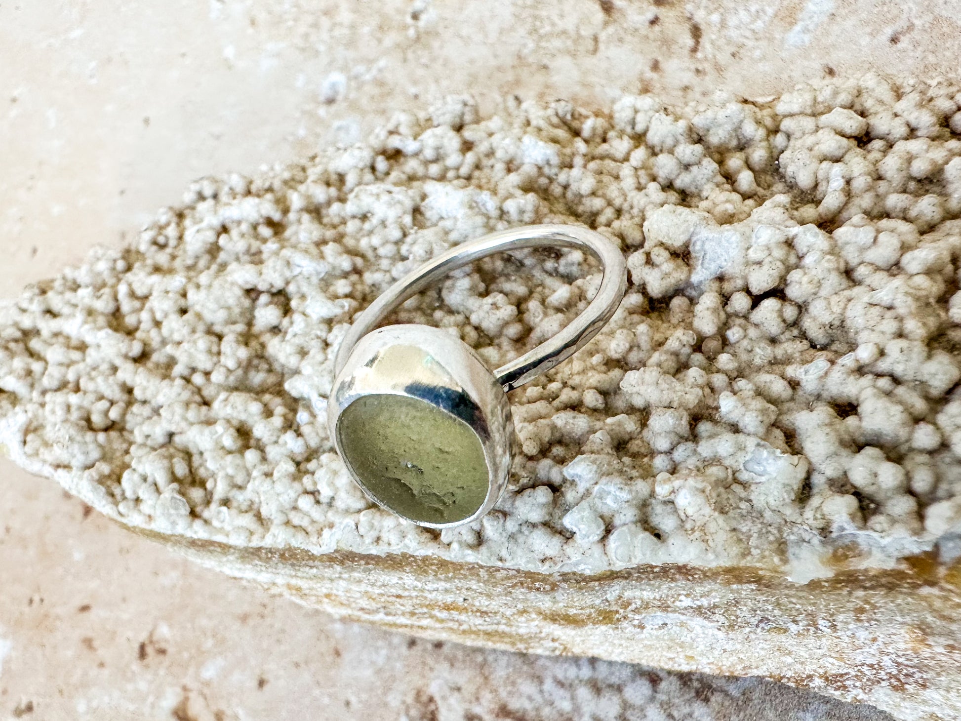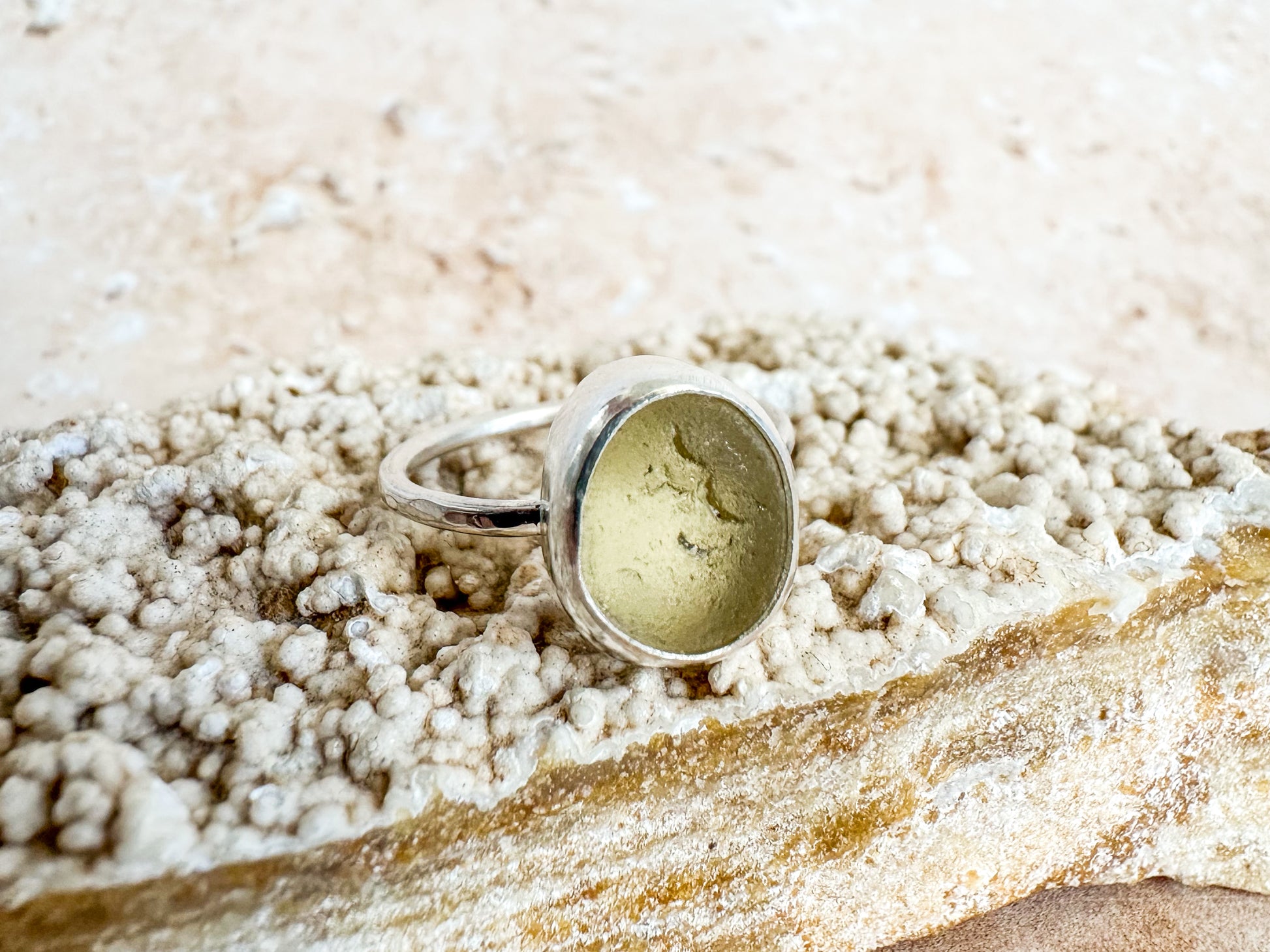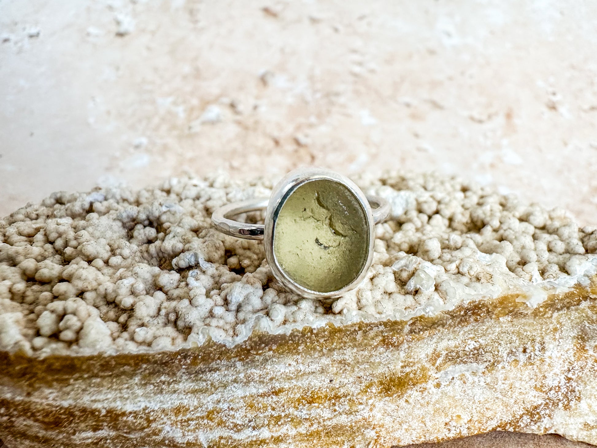 Pale yellow Seaham sea glass and sterling silver ring, size N