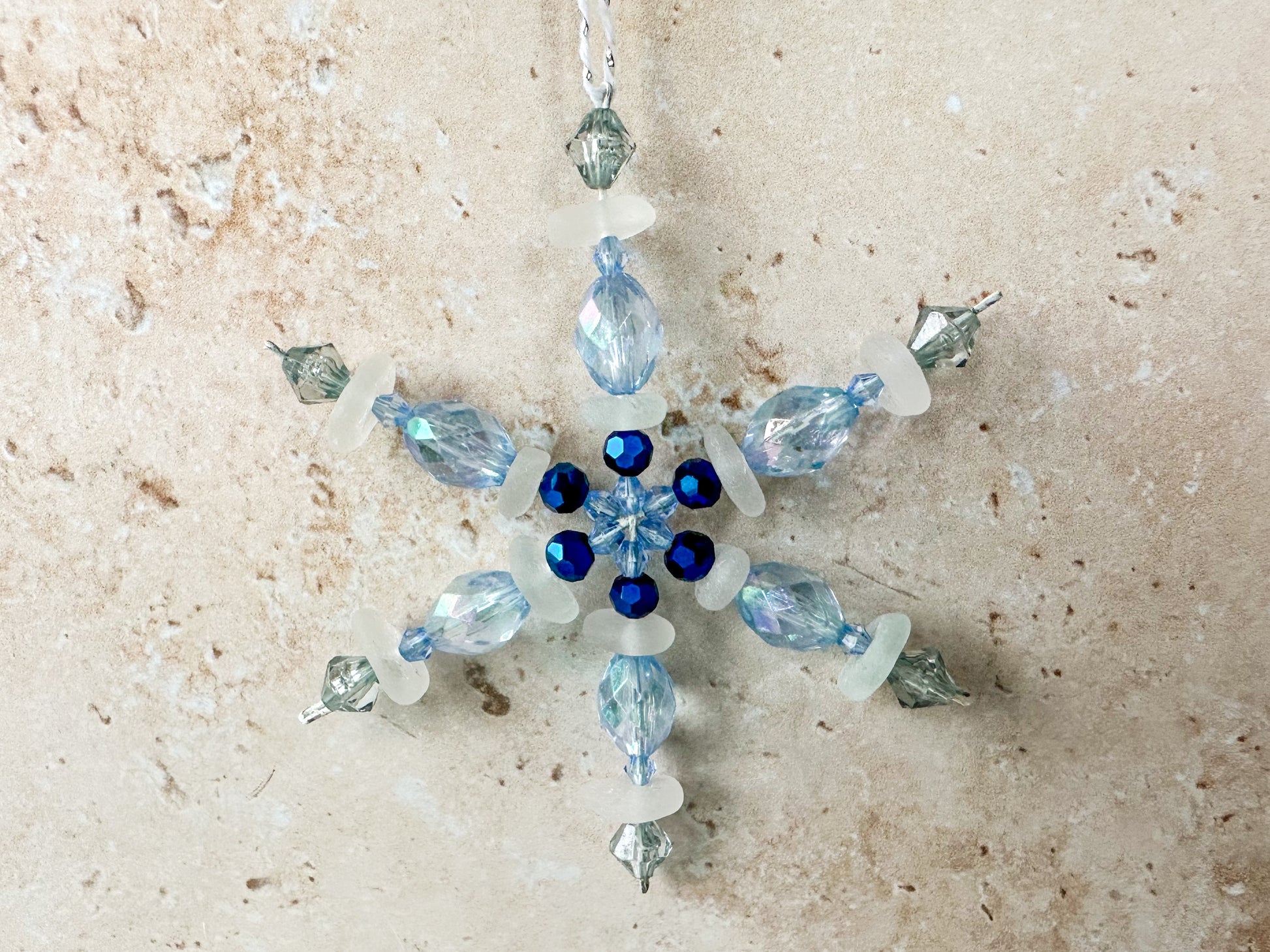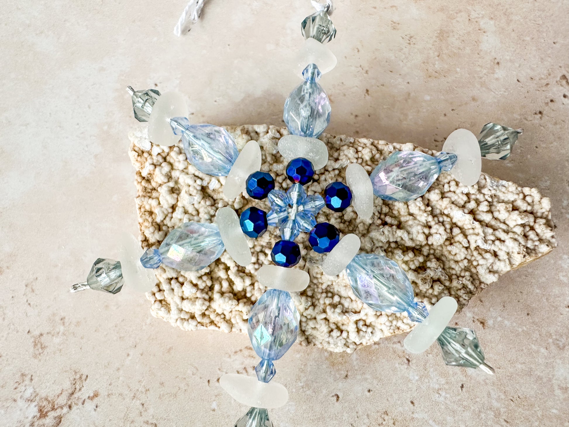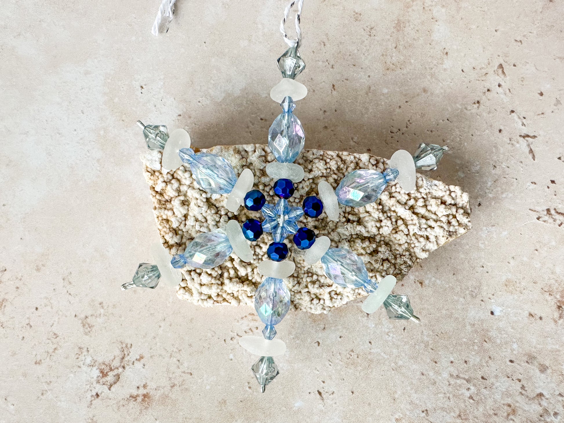 Add a little beachy sparkle to your space with this sea glass snowflake ornament - perfect for the Christmas tree, to hang in a window or even on the door!